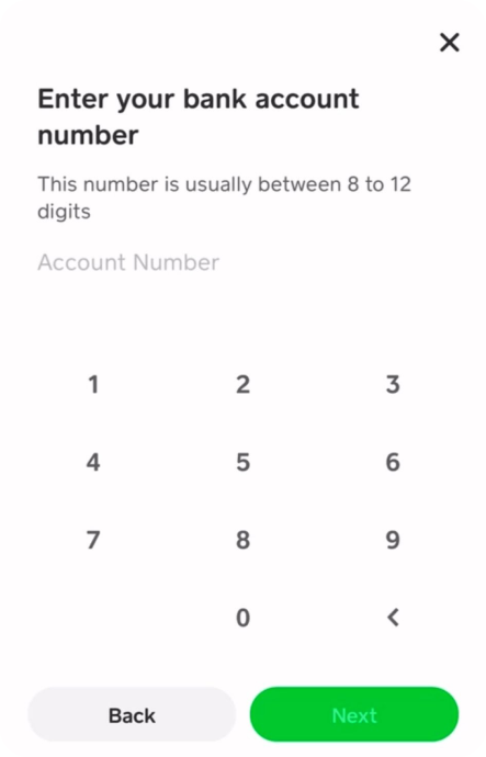 O CashApp pedirá para vincular sua conta bancária. Toque em "Continuar".